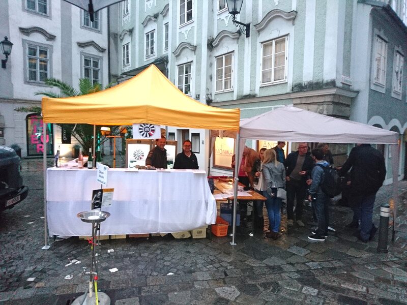 Und nun, im Herbst 2022, konnte endlich wieder das Weinfest in der Linzer Altstadt stattfinden. Echte Routiniers rosten nicht so schnell ein, Planung und Ausführung gelangen auf Anhieb, als würden wir nichts anderes tun. Und das trotz, oder gerade wegen des Organisationstalents unseres Präsidenten. Auch der Wein unseres langjährigen Partners Willi Bründlmayr - exzellenter Stoff, beste Voraussetzungen.